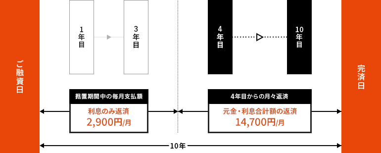 - 10年返済(据置3年後7年返済 ボーナス併用なし)